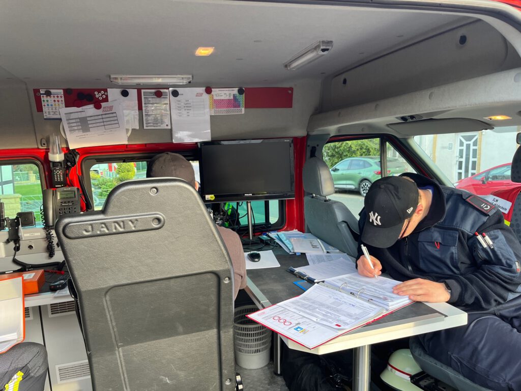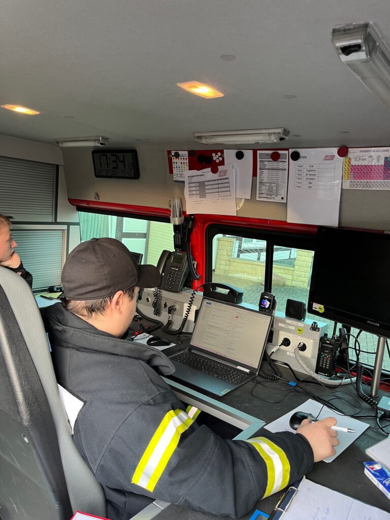 Insgesamt wurden unter entsprechender Schutzkleidung 17 Wisch- und Feststoffproben nach BBK-Richtline genommen. Parallel recherchierte die Besatzung vom ELW welches Labor die Auswertung zeitnah übernehmen kann. Nach Feierabend keine leichte Aufgabe!